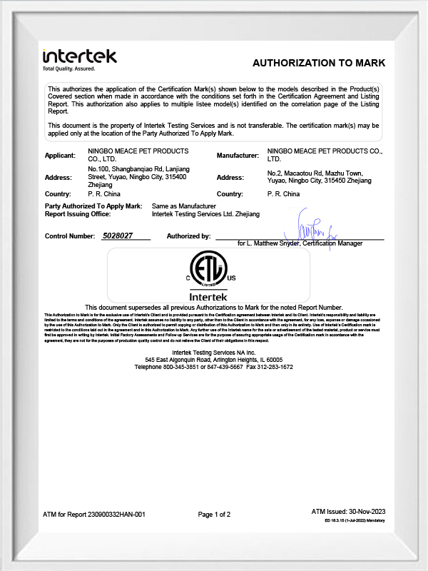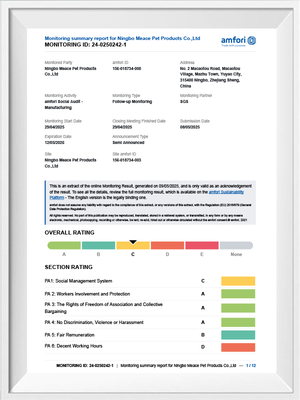 Ved at overholde et strengt kvalitetsstyringssystem, Ningbo Meace Pet Products Co., Ltd. sikrer, at hver enhed, der forlader vores 45.000 kvadratmeter store anlæg, er bygget til holdbarhed og brugersikkerhed.